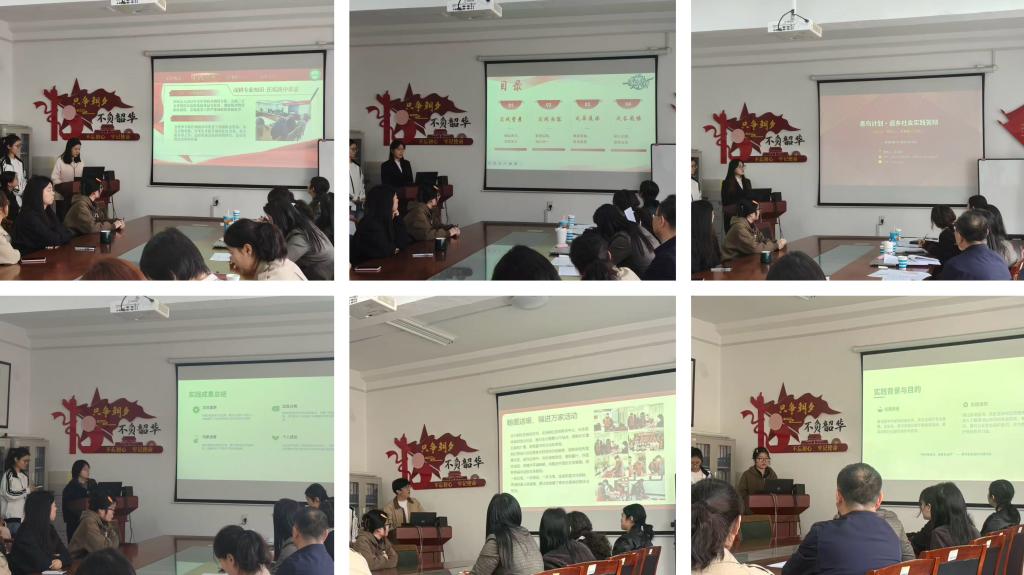 答辩环节中,同学们依次围绕各自实践项目的实施过程、成果成效及创新亮点展开阐述。各位同学结合实地调研与亲身感悟,展现了在各个领域的实践成果,体现了责任担当。评委老师进行了提问与点评,为同学们后续优化实践方案提供了建议。会议最后,王书记作总结讲话。他肯定了同学们在社会实践中的付出,强调社会实践是连接课堂与社会的重要桥梁,鼓励大家继续深耕实践沃土,在实干中提升综合素养。