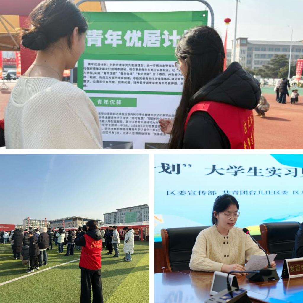 在新媒体宣传岗的实践中,我积极参与多项青年活动,如台儿庄区返乡大学生重点产业“家乡行”暨“青鸟归台·共赴未来”学子见面会、台儿庄区首届大学生春晚暨青年非遗传承文化节、枣庄市2026年“春风行动暨就业援助季”推进活动等。在返乡学子见面会上,我有幸作为返乡大学生代表登台发言;在大学生春晚现场,我用镜头定格非遗文化与青年活力碰撞的精彩瞬间;在“春风行动”活动中,我用影像捕捉民生服务的温暖画面,用文字搭建青年与家乡的沟通桥梁。实践期间,我累计发表原创公众号文章13篇,转载优质推文23篇,文章阅读量累计突破7000次。在一次次文稿打磨、镜头定格中,我真切体会到,新媒体工作既要精准高效传递信息,更要用心用情传递温度。这让我对新媒体工作有了更深的体悟,也进一步理解了基层宣传工作“服务青年、助力家乡”的时代内涵。