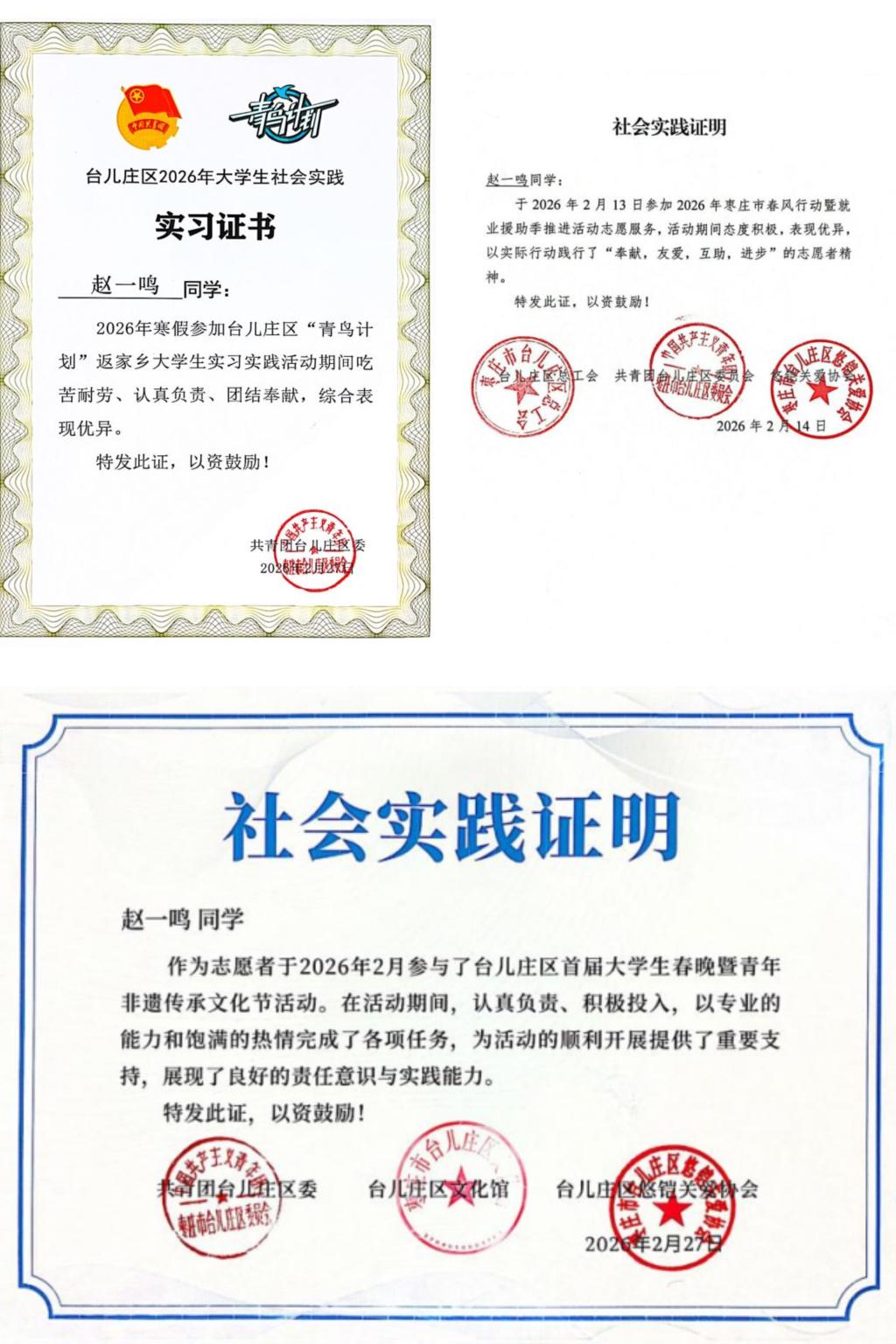赵一鸣 2025级秘书学专业 实践单位:共青团台儿庄区委员会