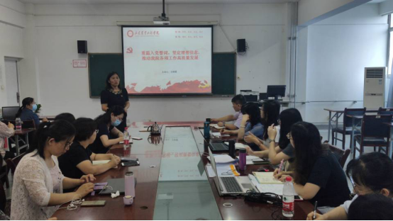 王院长接着结合当前学院面临的本科合格评估任务、专业与课程建设等方面,带领大家深入学习了共产党员的八项义务、党员的理想信念以及新时代高校教师职业行为十项准则。并就如何推动我院各项工作高质量发展做了深入阐述。听完党课后,教师党员轮流发言,从自身工作出发,如何以党员标准要求严格自己,并做出庄严承诺。