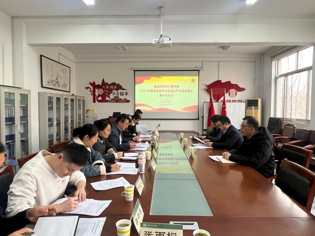 1月26日下午,学院在济南校区3号教学楼202会议室召开了2025年度党支部书记全面从严治党述责述廉评议会议。校列席旁听工作组组长、校党委委员、副校长周吉鹏,校列席旁听工作组成员许武强、郭松明列席会议。学院党委委员、各党支部书记、教师代表参加会议,会议由学院党委书记王猛同志主持。