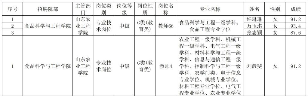 根据《山东农业工程学院2025年公开招聘工作人员简章(长期招聘)》相关规定,按照岗位招聘计划和相应工作程序,我院于2025年12月12日上午组织完成了2025年公开招聘工作人员(长期招聘)岗位(教师66和教师4)直接考察工作,现对应聘人员考察结果进行公示。公示期为7个工作日,自2025年12月15日至2025年12月23日(不含节假日)。公示期间,如对公示人选有异议,请及时向学院反映,公示结束无异议,按照岗位招聘计划等额组织政审体检。