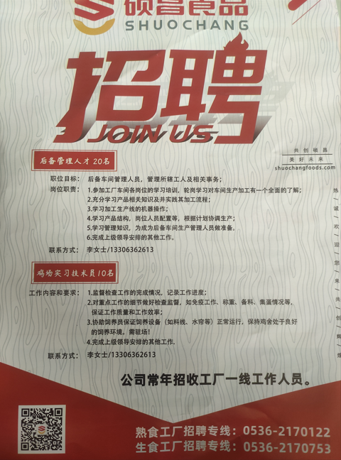 山东硕昌食品有限公司招聘信息