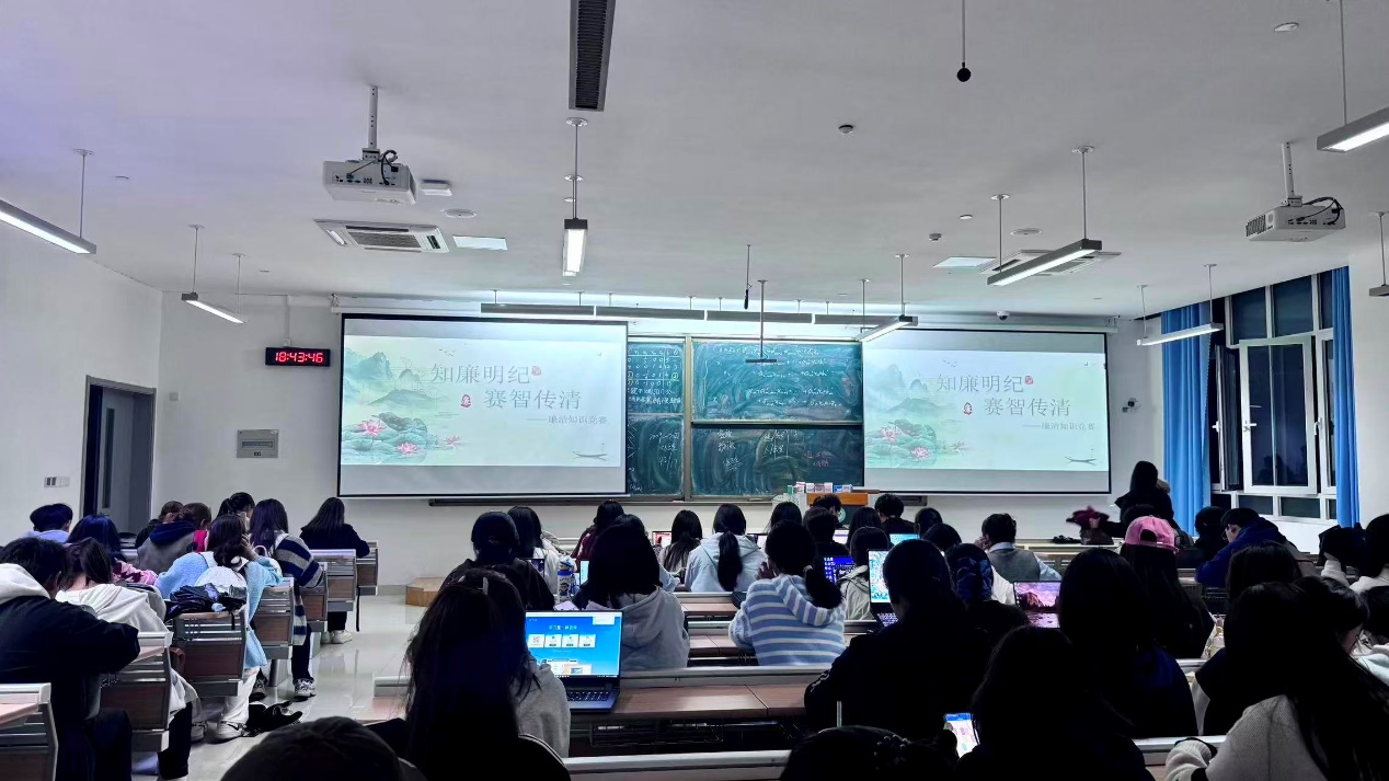 本次活动采用线下教室集中、手机答题的形式,同学们齐聚教室,通过手机进入答题界面。无需复杂准备,简单便捷的参与方式,极大激发了大家的参与热情。竞赛题目围绕“廉洁历史”“党纪法规”“廉洁故事”等核心内容,既涵盖了古代廉洁人物的高尚事迹,也包含了现代党纪法规的相关知识,既考验同学们对廉洁知识的掌握广度,也注重对廉洁精神的深度理解,让廉洁文化在答题过程中深入同学们心中。