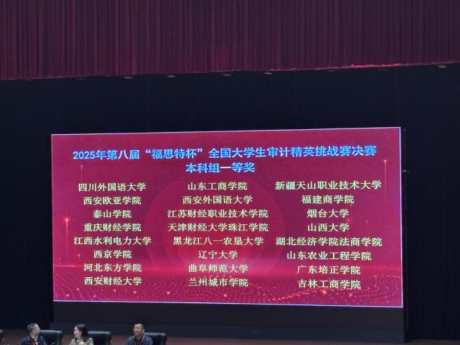 2025年11月29日,第八届“福思特杯”全国大学生审计精英挑战赛在南京审计大学举行。本届比赛由中国审计学会审计教育专业委员会主办,教育部审计学课程群虚拟教研室、南京审计大学国家审计学院承办。山东农业工程学院代表队凭借扎实的专业功底、出色的团队协作与卓越的临场表现,在众多参赛队伍中脱颖而出,荣获全国一等奖,展现了学院在应用型人才培养和财经专业教育方面的突出成果。