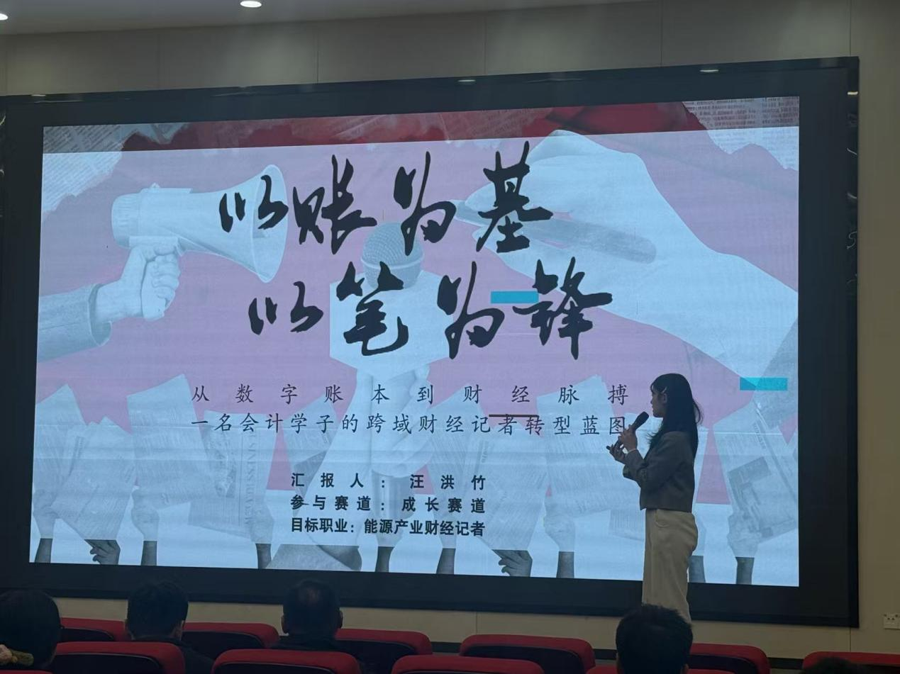 本届大赛延续“成长”与“就业”双赛道模式,紧密对接学生不同发展阶段的需求,吸引了全院23名优秀学子同台竞技。在成长赛道,选手们通过详实的自我探索报告和阶段性成长规划,描绘出清晰而充满活力的个人发展蓝图。就业赛道的选手则聚焦实际岗位,凭借丰富的实习实践、扎实的专业技能和富有策略的求职展示,充分彰显了商学院学子的职业竞争力与实践能力。