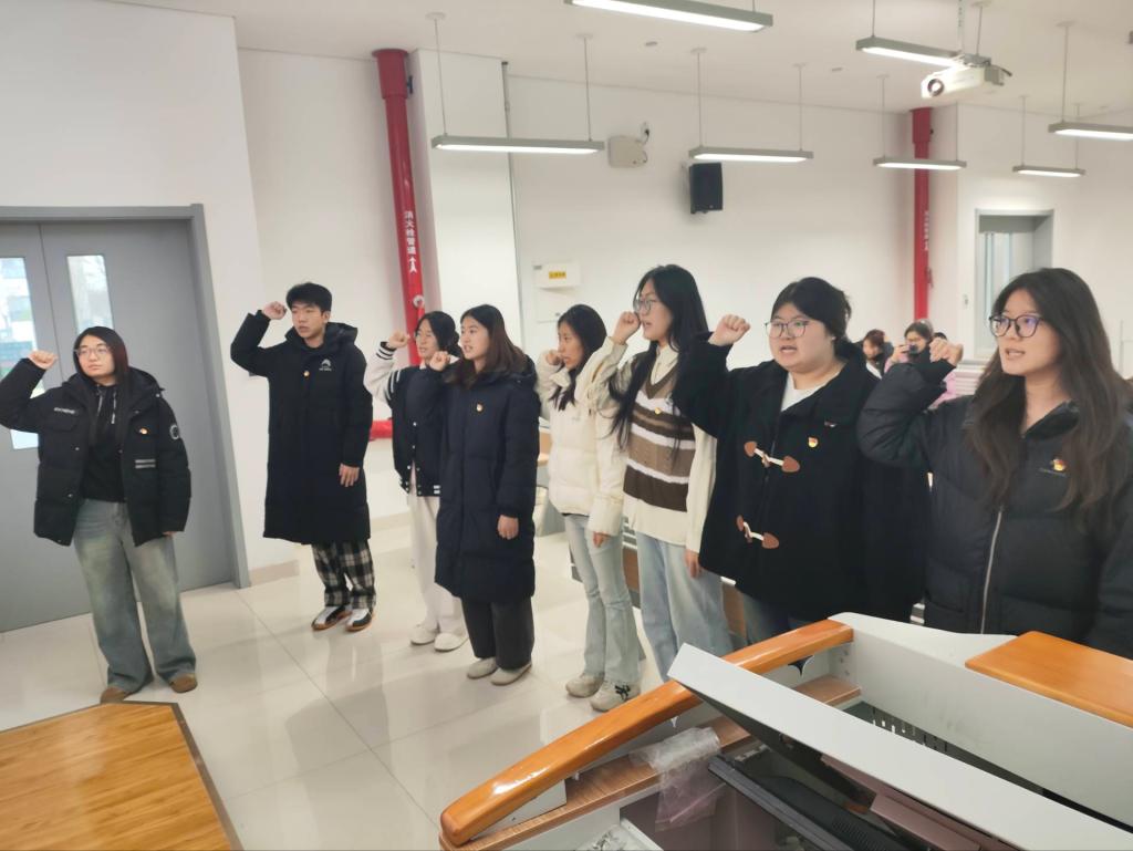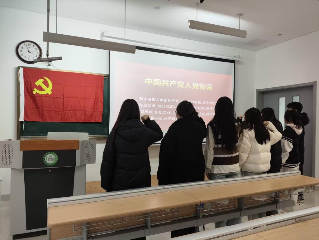 为持续夯实基层党组织建设基础,引导新发展党员深化对党的理论理解与实践认知,切实强化其党员意识、责任担当和先锋模范作用,商学院学生一、二、三党支部于2025年12月11日在文法西B104举行了新接收预备党员集体宣誓仪式。这不仅是对学生党员成长历程的重要见证,也标志着这批优秀学子将把商科专业素养与党员使命紧密结合起来,在社会实践与服务同学中发挥模范带头作用,为学院党建与学风建设注入新的活力。