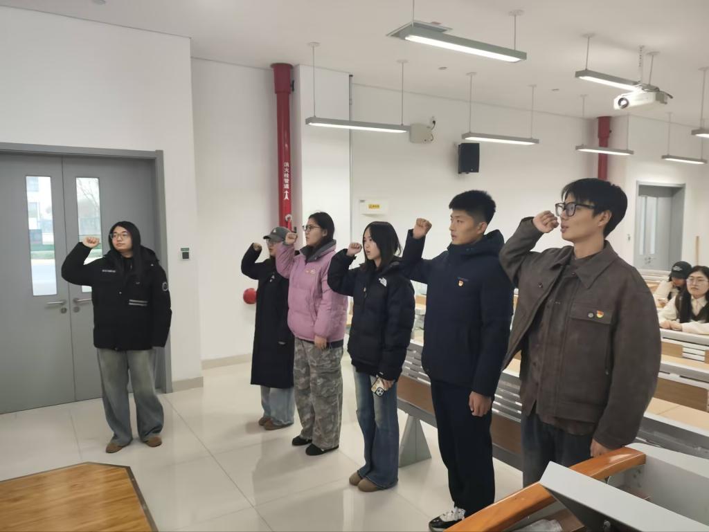 宣誓仪式上,新发展学生党员神情肃穆地举起右拳,以洪亮而坚定的声音逐句宣读入党誓词。从“拥护党的纲领”到“为共产主义奋斗终身”,每一句誓言都饱含着赤诚与信念,传递出他们扎根学业、服务同学、勇担使命的决心。这庄严一刻,深深烙印在每个人心中,也将时刻提醒他们以党员标准严格要求自己,以实际行动践行初心。