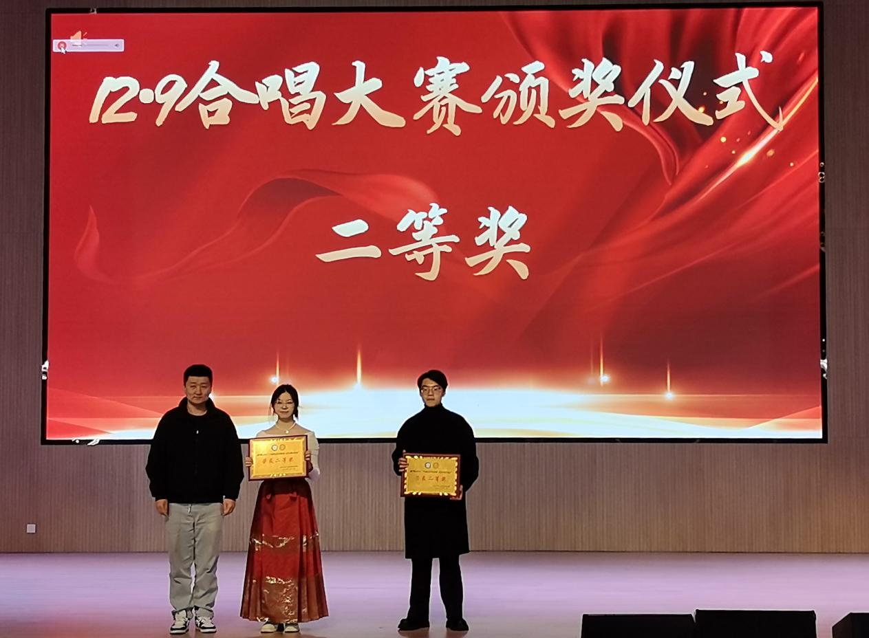 表彰会后,大家通过一段视频了解到了“一二•九运动”的历史和重要意义,党史中热血青年的峥嵘岁月重现眼前。随着视频终了,灯光转亮,合唱比赛在这澎湃的爱国激情中盛大启幕。