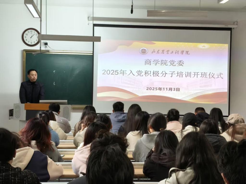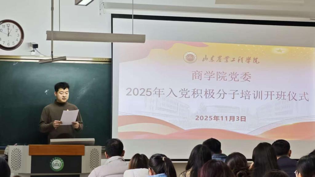 2025年11月3日,商学院2025年下半年入党积极分子培训班开班仪式在庄严的《国际歌》中拉开帷幕。本次培训是商学院党委深入学习贯彻习近平新时代中国特色社会主义思想、全面落实新时代党的建设总要求的重要举措,旨在为党和国家培养能够担当民族复兴大任的时代新人,助力青年学子夯实信仰根基、坚定理想信念。