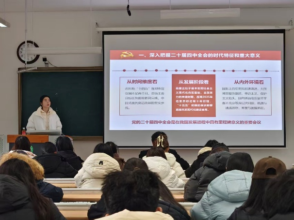 2025年12月30日,商学院在文法西楼B104教室成功举办“深入学习领会党的二十届四中全会精神”专题宣讲会。本次会议特邀马克思主义学院吴悦老师担任主讲,旨在引导全院师生党员准确把握全会核心要义。