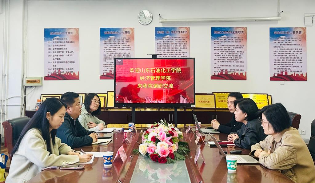 3月25日上午,山东石油化工学院经济管理学院副院长张朋程、经济管理系主任闫光芹、财务管理教研室主任杨琳一行来我院就专业建设情况进行调研交流。学院院长连华主持座谈会,财务管理教研室主任侯国栋、骨干教师李秀萍参加座谈。