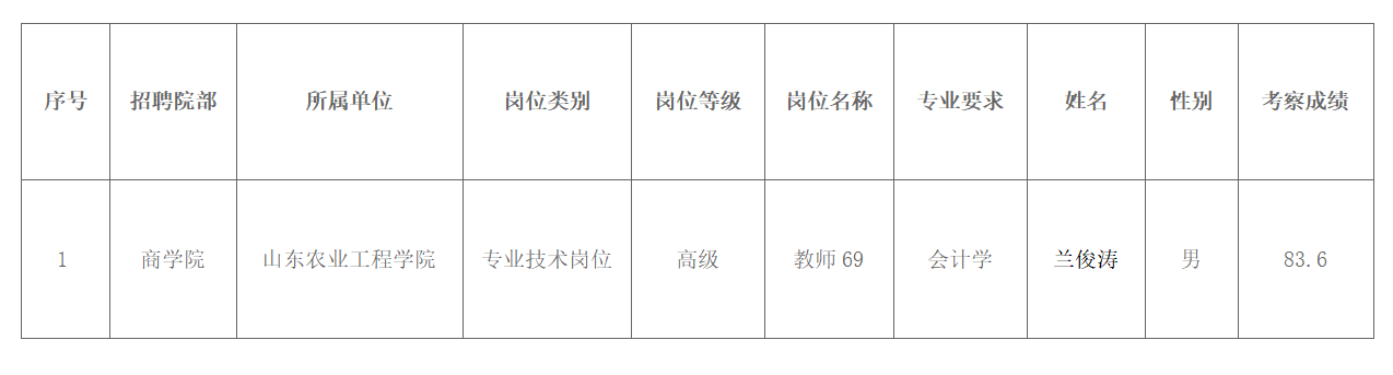 根据《山东农业工程学院2023年第二批公开招聘工作人员简章(长期招聘)》相关规定,按照岗位招聘计划和工作程序,我院已组织完成了2023年第一批公开招聘(长期招聘岗位)直接考察工作,现对应聘人员考察结果进行公示。公示期为7个工作日,自2023年4月27日至2023年5月9日(不含节假日)。公示期间,如对公示人选有异议,请及时向学院反映,公示结束无异议,按照岗位招聘计划等额组织政审体检。