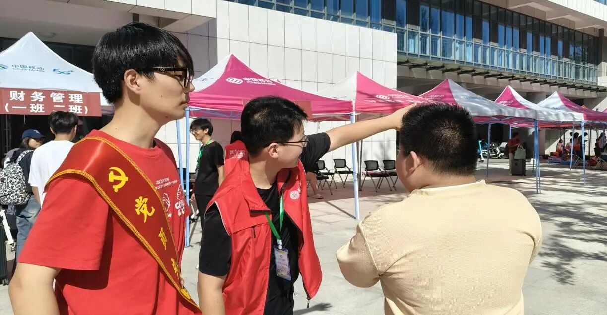 无论是报到现场,红马甲党员主动帮提行李、引导流程,手把手教新生填写入学资料,还是宿舍区,协助整理床铺、讲解安全规范,耐心解答住宿疑问;党员先锋岗用一次次贴心的服务、一个个温暖的举动,将“初心”落在实处。