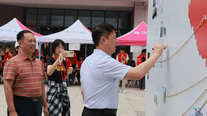 9月6、7日新生报到时,商学院设“同心筑梦”新生地图签名墙以全国地图为底融入各地域不同民族特色与迎新寄语新生在本民族故乡区域写下姓名、心愿、民族文字符号,快速建立集体认同为新生初遇商院增添温暖底色。