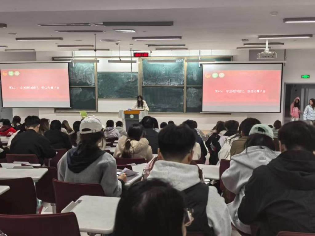 2025年10月9日,商学院在淄公南楼B102教室举办“学团规知团纪,强信念勇担当”主题团课,旨在引导入团积极分子熟知团的规章制度,筑牢理想信念根基,由学院团总支学生兼职副书记孙玮主持,全体入团积极分子参与。