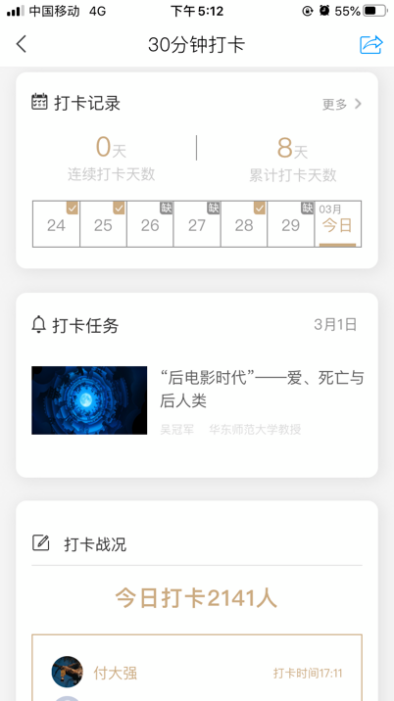 2.点击“30分钟打卡”参与活动。