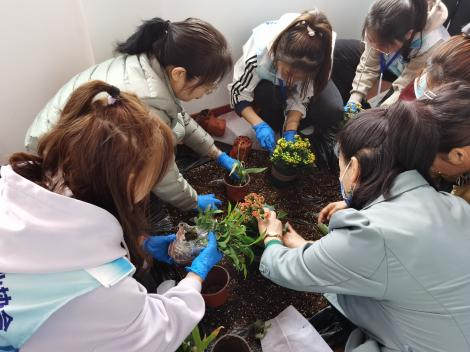 讲座结束后,志愿者们为每位居民分发了花卉和所需工具,在共同努力下,一盆盆长寿花呈现在大家面前,一朵朵含苞待放。活动在一阵阵欢声笑语中结束,志愿者们打扫了现场卫生,并将长寿花送给参与活动的老人,祝福他们健康长寿。