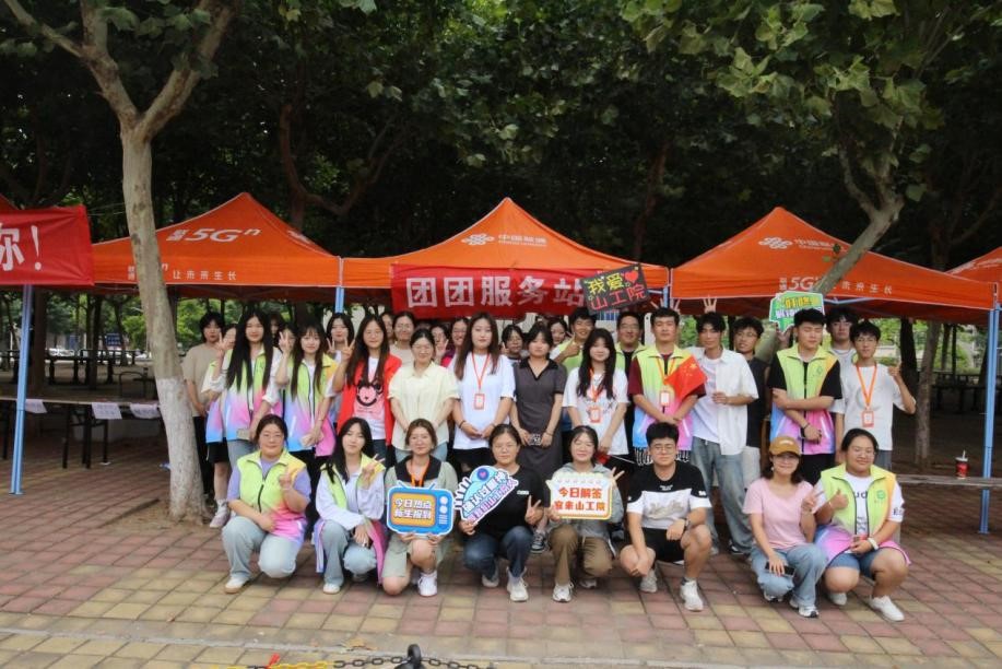一份份《2023级新生宣传手册》涵盖了三校区平面布局图、生活App使用说明、校园周边环境介绍及出行指引等,搭配公众号“校园生活指引”推文,“线上+线下”全方位助力新同学尽快熟悉校园环境融入校园生活。一幅幅精美相框,记录下新同学与学校的第一张合影,诉说着学校对新同学最热烈的欢迎与最美好的期许。一个个“团团服务驿站”遍布校园各处,为新同学答疑解惑、排忧解难,让新同学体会到如家一般的温暖。一处处精心布置的“校园寻宝打卡点”,一件件蕴含深意的小礼物激发了新同学对大学生活的无限向往与憧憬。一位位校园志愿者,忙碌穿梭于校园之间帮助新同学搬运行李、进行车辆引导、介绍校园环境,用行动传递着山工院对新同学的浓浓温情。