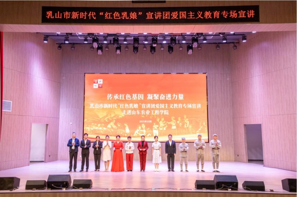 传承红色基因 凝聚奋进力量。为纪念中国人民抗日战争胜利80周年,深入开展新时代爱国主义教育,10月24日下午,乳山市新时代“红色乳娘”宣讲团走进我校,在淄博校区大学生活动中心为师生带来了一场深刻的思想洗礼。校党委委员、宣传部部长牛化振,乳山市委宣传部相关领导,校团委主要负责人,各学院党总支副书记、团总支书记、辅导员代表、学生预备党员、青马学员代表共计500余人参加本次活动。
