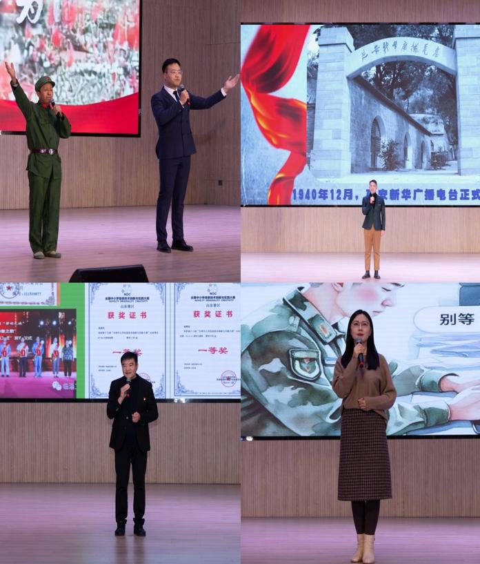 展演内容既有革命历史题材,还有新时代奋斗者故事。《小煎饼大国防》以小见大,讲述了平凡岗位上的国防担当;《我的科教强国梦》与《十年,一位军嫂的坚守》则深情诠释了人民教师的创新执着与军嫂的无悔奉献。这些身边的故事展现了“为人民服务”宗旨在新时代的生动实践,生动勾勒出“淄博红”的精神底色,让在场师生深刻感悟到家国情怀的时代内涵。