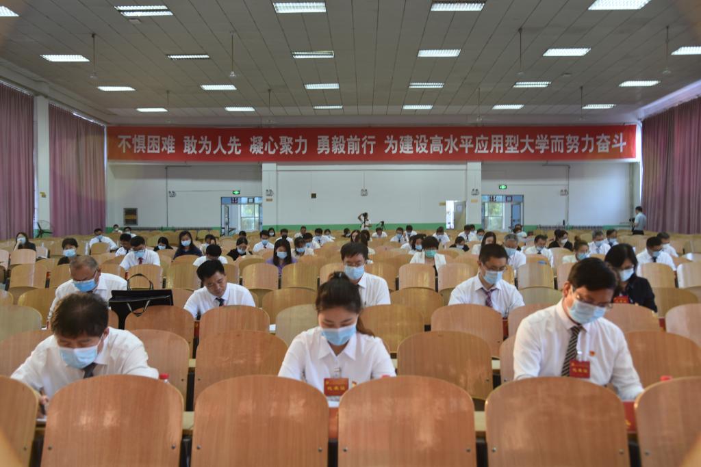 大会主题是:坚持以习近平新时代中国特色社会主义思想为指导,深入贯彻落实习近平总书记关于教育重要论述和对山东工作重要指示批示要求,坚持社会主义办学方向,落实立德树人根本任务,推进全面从严治党向纵深发展,主动服务和融入新发展格局,团结带领全体师生员工,不惧困难、敢为人先,凝心聚力、勇毅前行,为建设高水平应用型大学而努力奋斗。