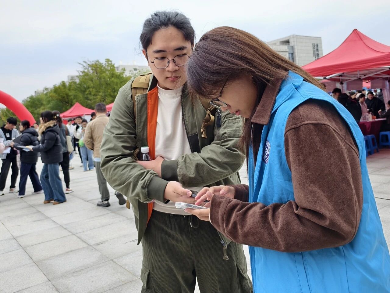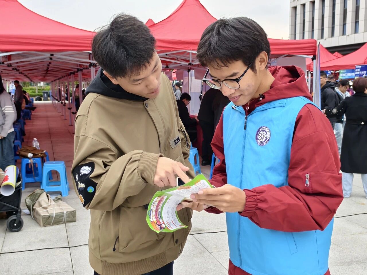 随着招聘会正式启动,志愿者们如同灵动的星火,散布在会场的各个角落。在入口处,他们以温暖的笑容和周到的指引,为每位参会者的求职之旅点亮第一缕光亮;在展位之间,他们化身为企业与学生之间的沟通桥梁,协助招聘单位高效传递信息,推动双方深入交流;在休息区域,他们又成为热情的服务使者,用细致入微的关怀,让每一位参会者都能感受到被精准回应的温暖。在各个关键位置都有我们的志愿者为大家解答疑惑,提供资源补给和后勤支持,让参会者们在求职的忐忑于奔波中,始终能触摸到一份踏实的依靠与被妥帖关照的归属感。