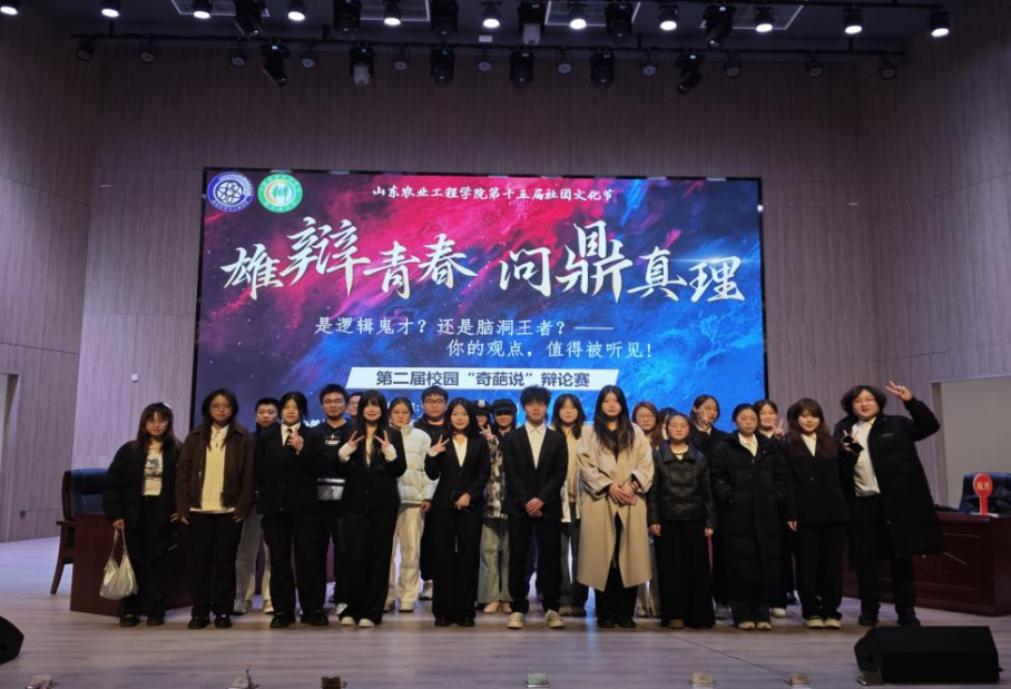 为丰富校园文化生活,提升学生逻辑思辨与语言表达能力,由山东农业工程学院校团委主办,信息科学与工程学院稷下辩论社承办,联合多学院辩论队共同开展的“雄辩青春,问鼎真理”第二届校园奇葩说辩论赛决赛于2025年11月30日晚在大学生活动中心隆重举办。由稷下辩论社指导老师信息科学与工程学院辅导员赵丛楠、林业工程学院辅导员张振、食品科学与工程学院辅导员刘志琨、机械电子工程学院辅导员徐昕宇、国土资源与测绘工程学院辅导员李龙坤担任评委,各学院辩论队学生代表为学生评审团。