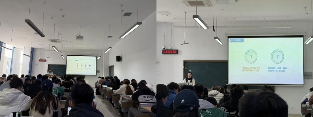 为进一步深化课程教学改革,探索专业课与思政教育的有机融合,近日,我院信息安全教研室教师武丽萍老师针对《Linux系统管理与应用》课程开设了一节院级公开观摩课,授课内容为Linux用户与账户管理,其精湛的现场命令演示与自然的思政融入,为观摩师生呈现了一堂既有技术深度又充满育人温度的示范课堂。