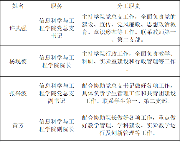 主持学院党委工作,全面负责党的建设、宣传、党风廉政、思想政治教育、意识形态等工作。联系教师第一、第二支部。 |