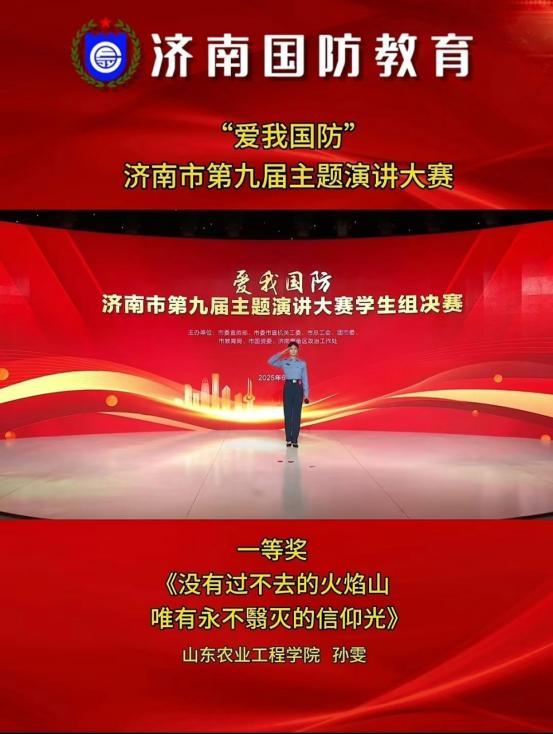 9月17日,为纪念中国人民抗日战争暨世界反法西斯战争胜利80周年,由省委宣传部、省委省直机关工委、省总工会、团省委、省教育厅、省国资委、省军区政治工作局联合举办的“爱我国防”第九届山东省主题演讲大赛圆满结束。我校国土资源与测绘工程学院23级土地资源管理专业孙雯同学、经济管理学院25级毕业生刘晓晴同学荣获优秀奖。