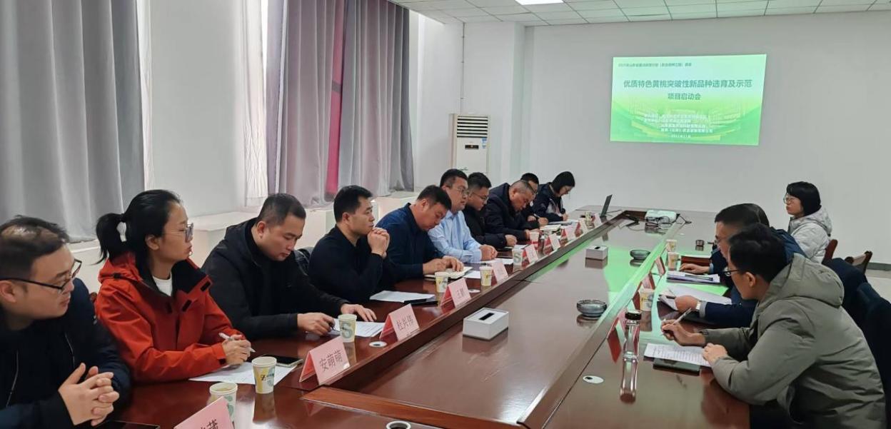 11月18日上午,我校果树种质创新与现代高效栽培团队和临沂毓秀农业发展有限公司联合申报获批的2025年度山东省重点研发计划(农业良种工程)项目《优质特色黄桃突破性新品种选育及示范》项目启动会在蒙阴举行。山东农业工程学院农业科技学院党委书记王猛、项目技术负责人刘进教授,蒙阴县政协副主席、二级调研员李守才,蒙阴县科技局党组书记、局长李先晓,项目合作企业负责人等出席会议。会议由蒙阴县科技局党组书记、局长李先晓主持。
