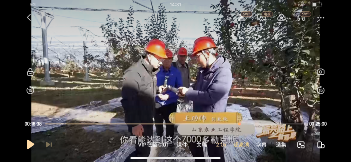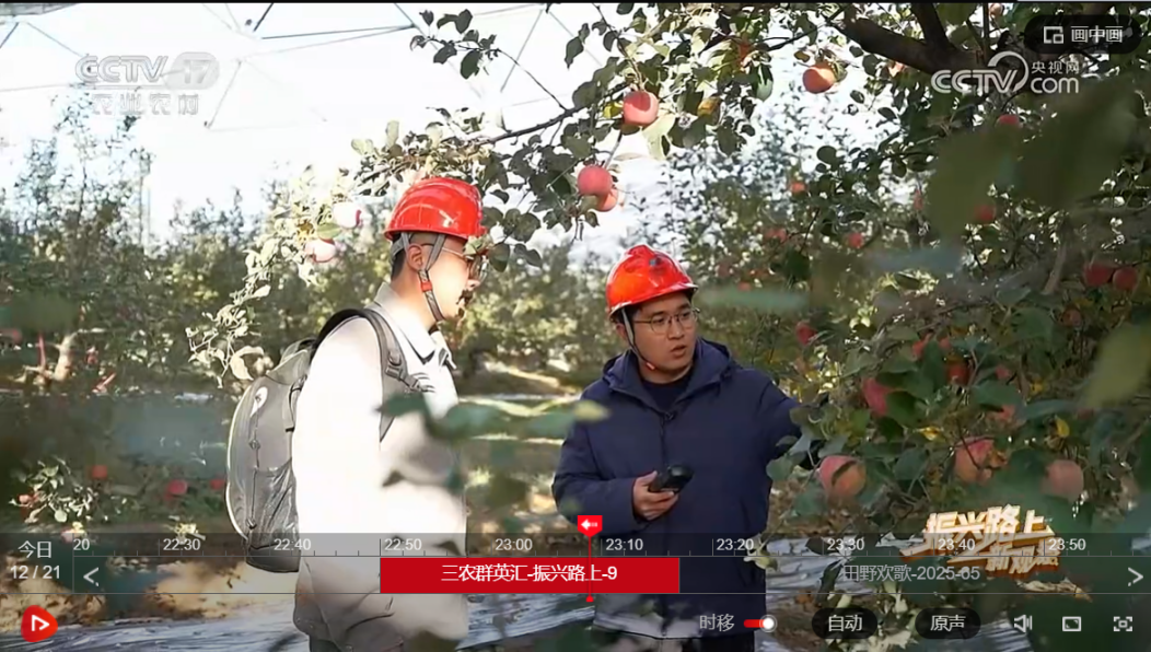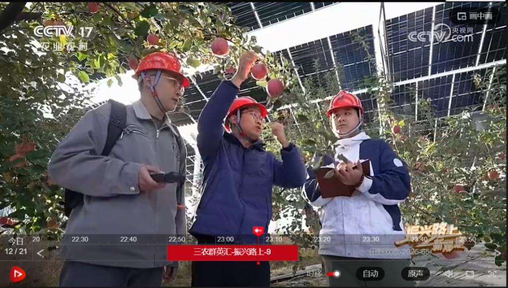 近日,由农业科技学院王功帅团队承担的陕西华电集团“基于光伏环境的苹果高效生产关键技术研究与示范”项目,因成功破解光伏与果树共生的“光照难题”、助力陕西革命老区苹果产区高质量发展,受到中央电视台关注。该项目相关研究成果及应用成效于2025年11月11日至15日接受央视17农业农村频道“振兴路上新观察”节目组专题采访,采访节目已于2025年12月21日22:50正式播出。