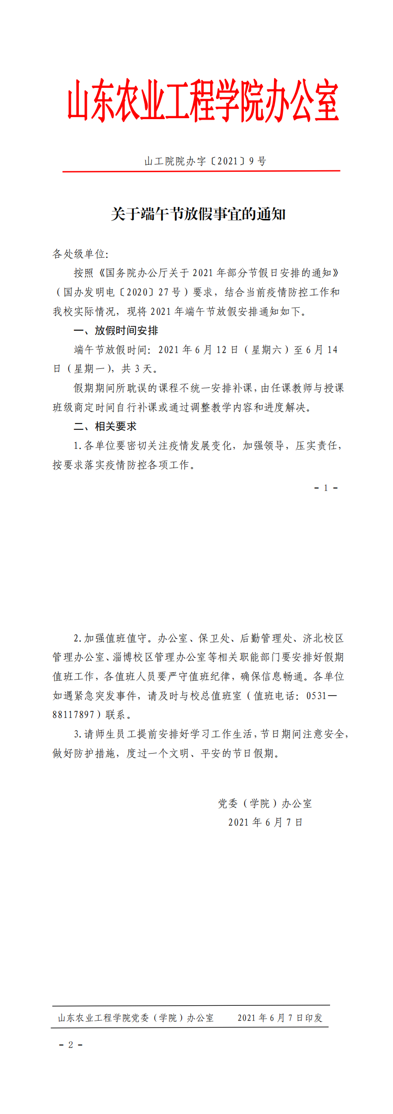 关于端午节放假事宜的通知