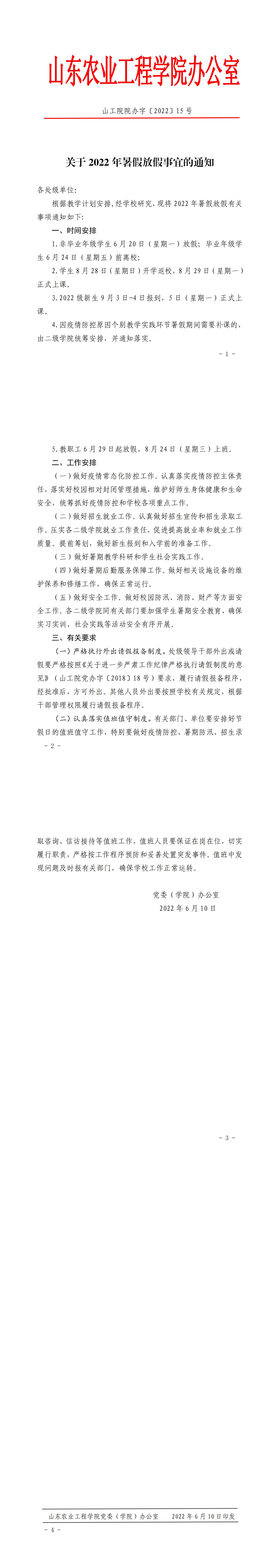 2022年暑假放假事宜的通知