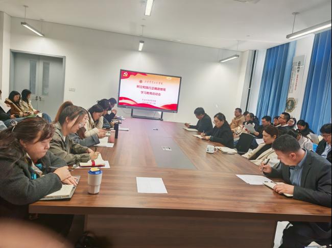 会议强调,要准确把握学习教育的核心要求与重点任务。一是要坚持原原本本学、融会贯通学,将学习《习近平关于树立和践行正确政绩观论述摘编》等核心材料结合起来,深刻领会其精神实质与丰富内涵。二是要坚决反对形式主义,注重学习实效,将学习研讨与推动学科建设、提升人才培养质量、增强社会服务能力等中心工作深度融合,切实防止“两张皮”现象。