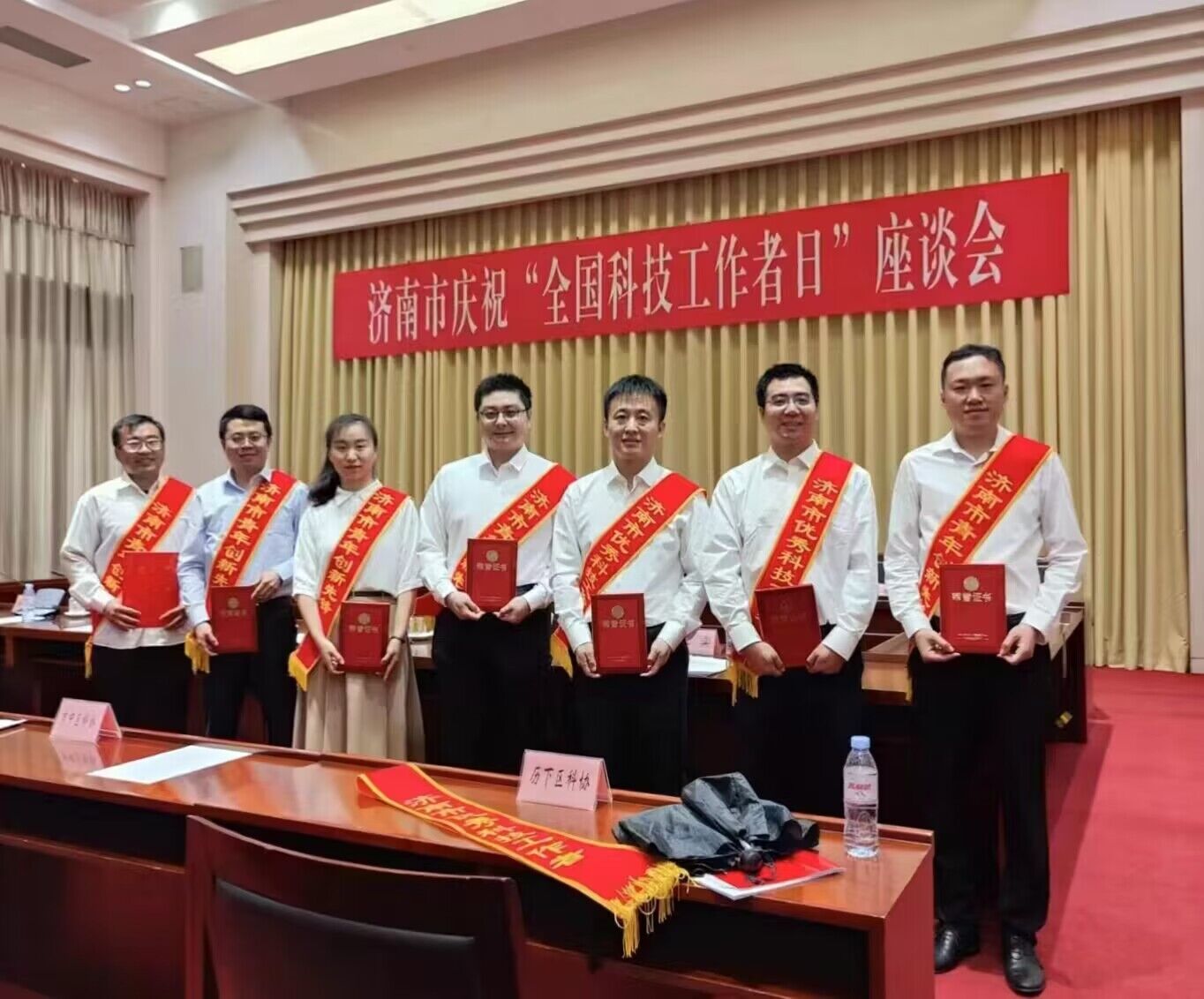 5月30日上午,在第七个“全国科技工作者日”到来之际,济南市召开庆祝“全国科技工作者日”座谈会。济南市委常委、副市长,市政府副秘书长吴剑,市科协党组书记、副主席贾文涛,市科技局副局长王芳,市科协副主席李武、潘玉斌等领导出席会议。济南市遴选出的8名优秀科技工作者代表及部分区县科协、市级学会等负责同志参加会议。