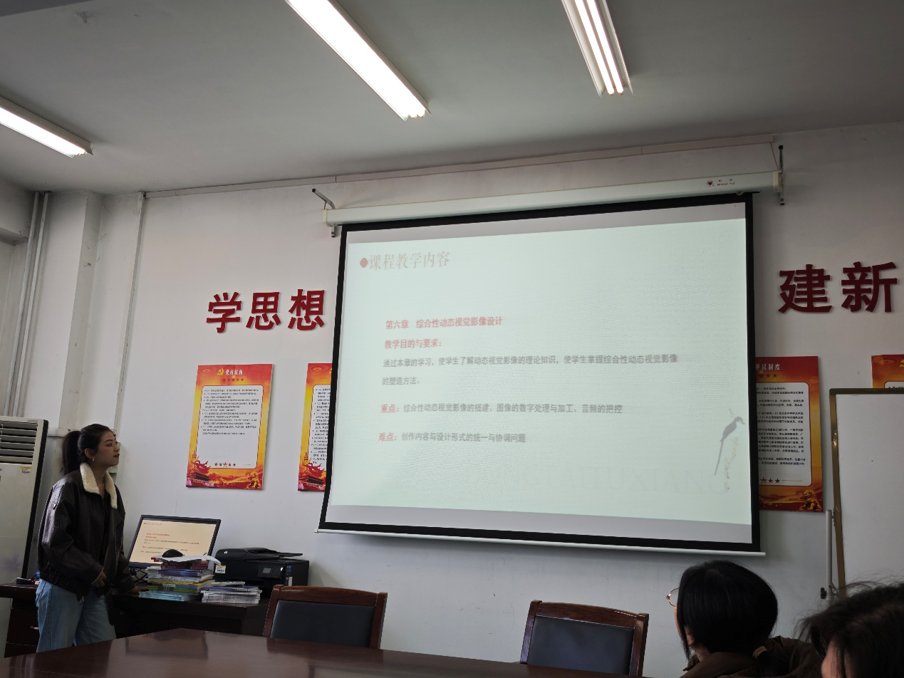 参与本次说课试讲的课程均为本年度新开设或由新进教师讲授的专业课程,涵盖《书籍设计》《动态图像设计》《包装结构》《IP形象设计》《印刷工艺》五门核心课程。活动中,各位教师围绕课程定位、教学目标、内容重构、教学方法及考核方式等方面进行展示。教师们准备充分,逻辑清晰,不仅展示了扎实的专业功底,还紧密结合行业前沿动态,将AIGC辅助设计、思政元素等内容有机融入教学案例,体现了课程的前瞻性与应用性。