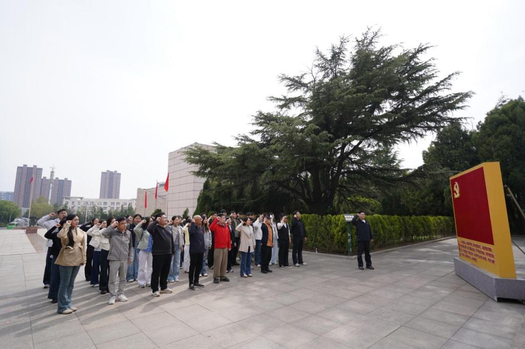 参观结束后,全体师生党员整齐列队于纪念碑前,举起右拳,庄严宣誓。“我志愿加入中国共产党,拥护党的纲领,遵守党的章程……”每一位党员都以饱满的热情、昂扬的姿态,重温入党时的庄严承诺和坚定决心,表达对党的无限忠诚与为党的事业奋斗终身的坚定信念。