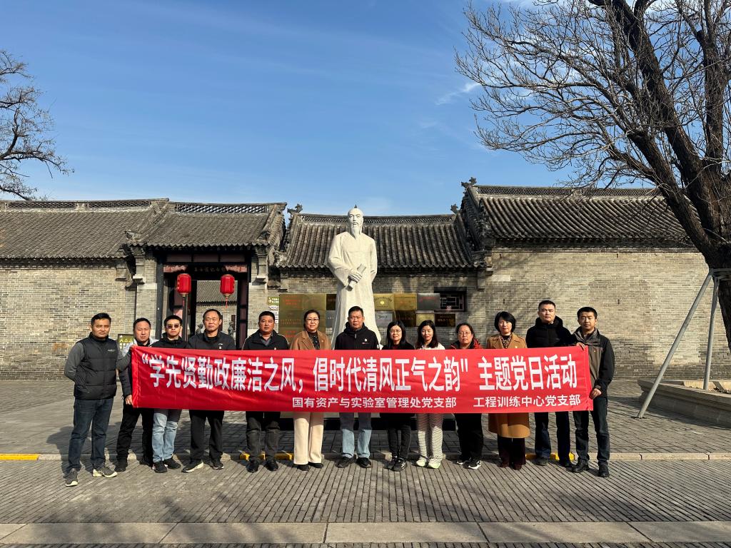 为深化党纪学习教育,弘扬中华优秀传统文化中的廉洁精神,11月20日,国有资产与实验室管理处党支部联合工程训练中心党支部组织党员赴王渔洋纪念馆,开展“学先贤勤政廉洁之风,倡时代清风正气之韵”主题党日活动。通过实地参观与互动研讨,汲取传统文化中的廉洁智慧,凝聚新时代担当作为的奋进力量。